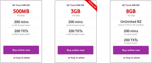 新西兰电信运营商的领头羊。从奥克兰机场一出口,就会看到vodafone的专柜。柜员一般会有华人,可以直接中文沟通,所以英文不够好的朋友不用担心啦。以下附上官网SIM卡套餐详情: